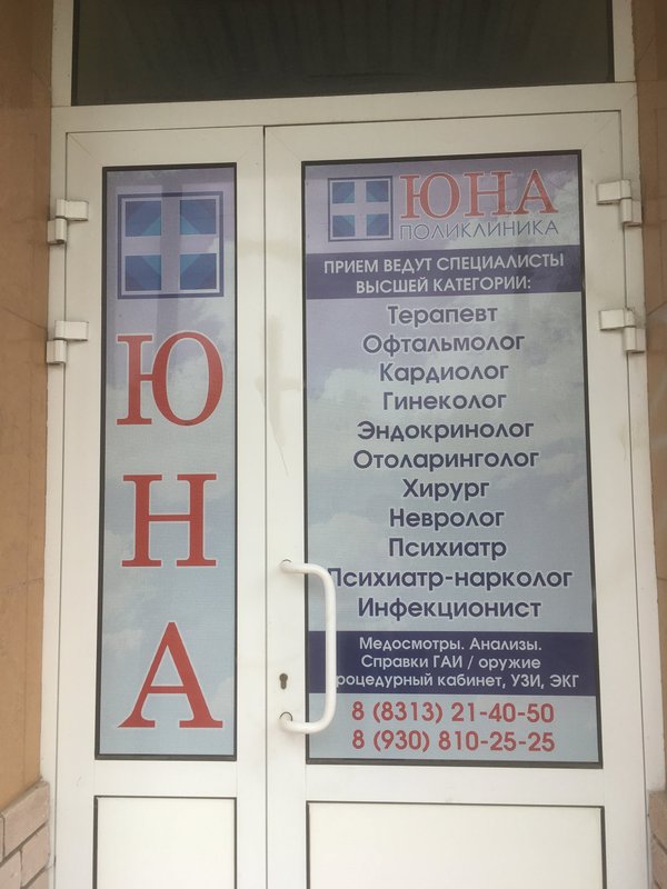 Поликлиника Юна - это учреждение широкого профиля, предлагающее специально подобранный комплекс процедур и услуг для каждого клиента. В клинике всё организовано с учетом максимального комфорта для посетителей. Техническое оснащение кабинетов позволяет провести диагностические исследования организма пациента для составления программы лечения и профилактических мероприятий. В клинике работают отделения общей терапии, кардиологии, неврологии, эндокринологии, урологии, гинекологии, офтальмологии, оториноларингологии. Наши работники имеют профильное медицинское образование и с пониманием отнесутся к вашим проблемам. Доверяя заботу о своем здоровье нам, вы можете быть уверены в результате.