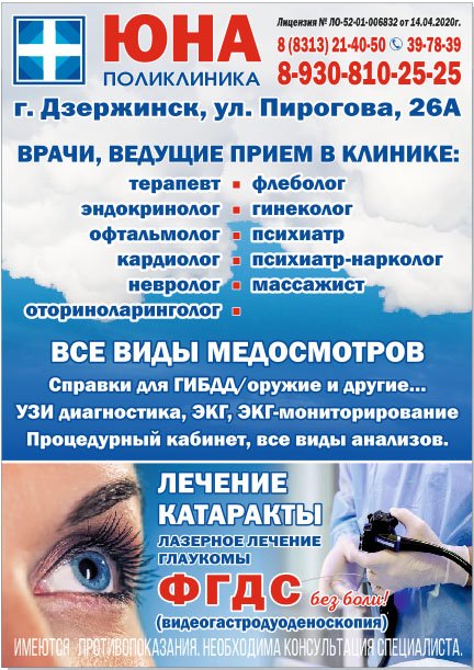 Поликлиника Юна на улице Пирогова в Дзержинске